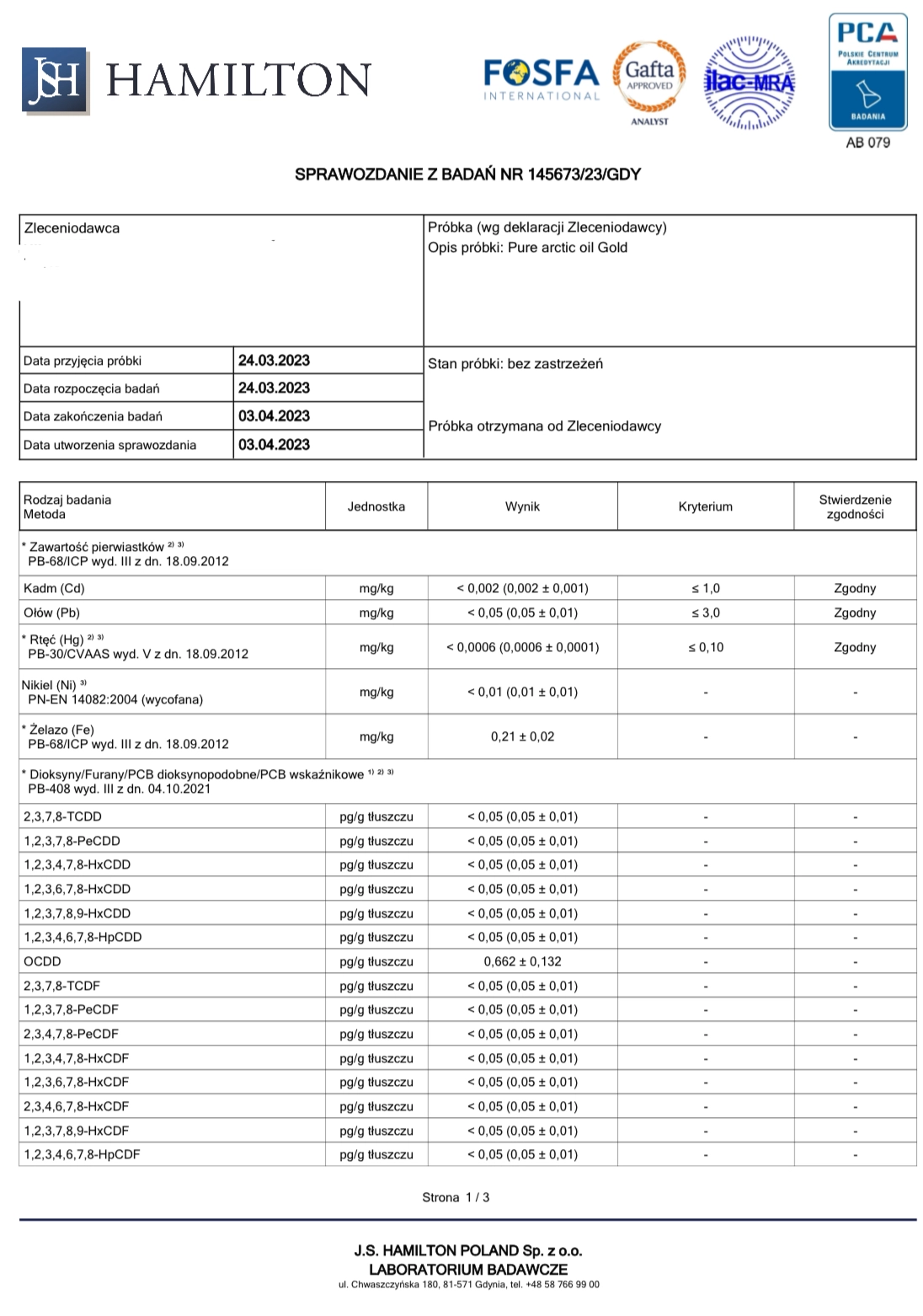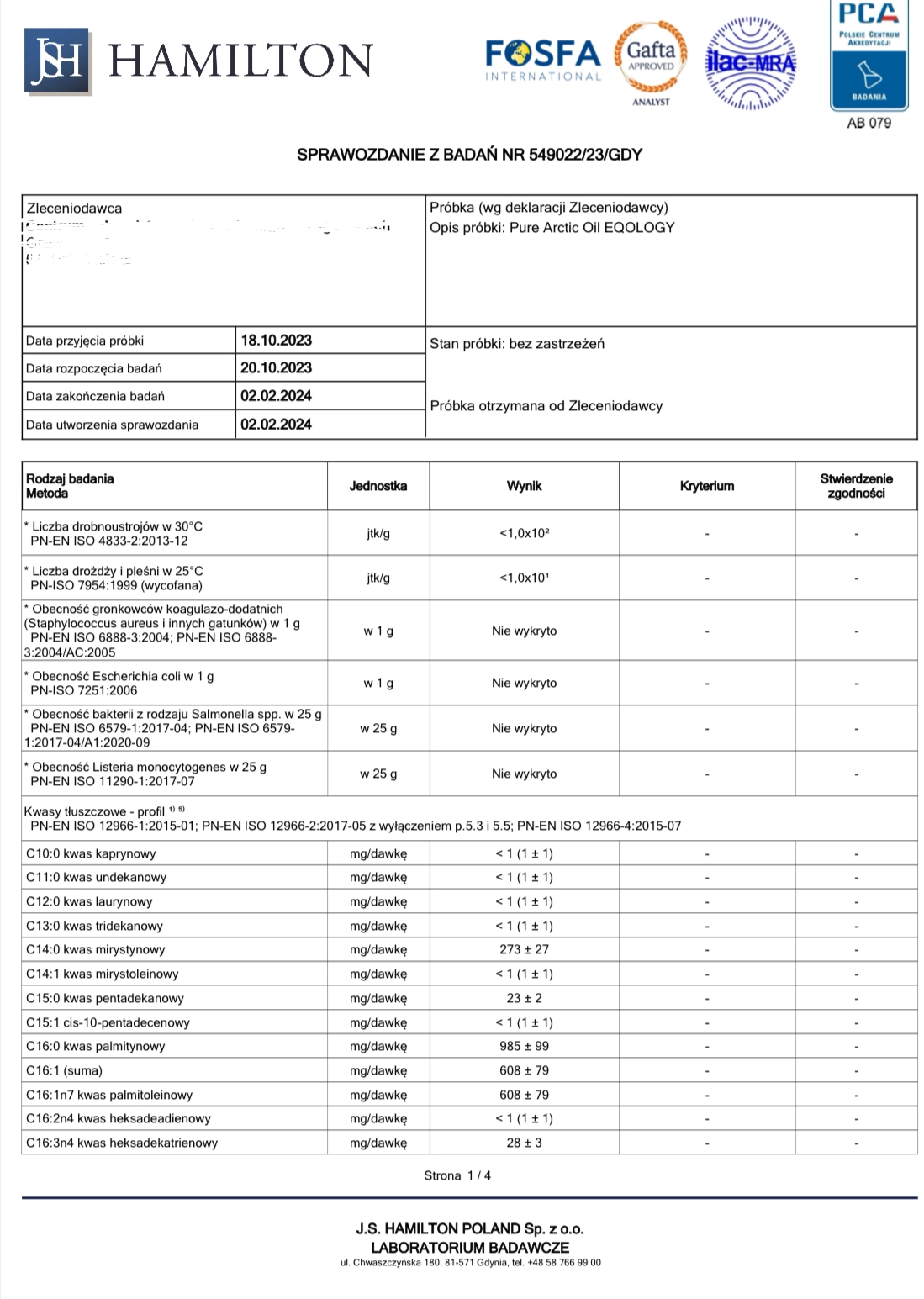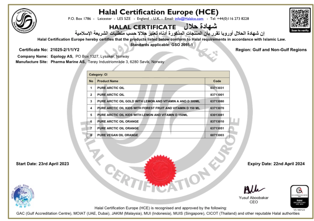 Rekomenduję kwasy omega 3 EQOLOGY, gdyż są wolne od metali ciężkich, przebadane na czystość mikrobiologiczną, posiadają niski TOTOX (3,7), czyli niski wskaźnik utlenienia oraz zawierają niezbędne certyfikaty, stanowiące o wysokiej jakości produktu. Zajrzyj do galerii, by zobaczyć certyfikaty, badania oraz efekty stosowania omega 3 Eqology.